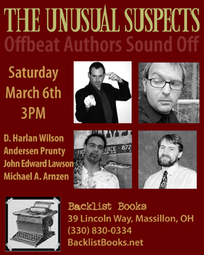 Andersen Prunty will be reading with D. Harlan Wilson, Michael Arnzen, and John Edward Lawson. Here’s the info: